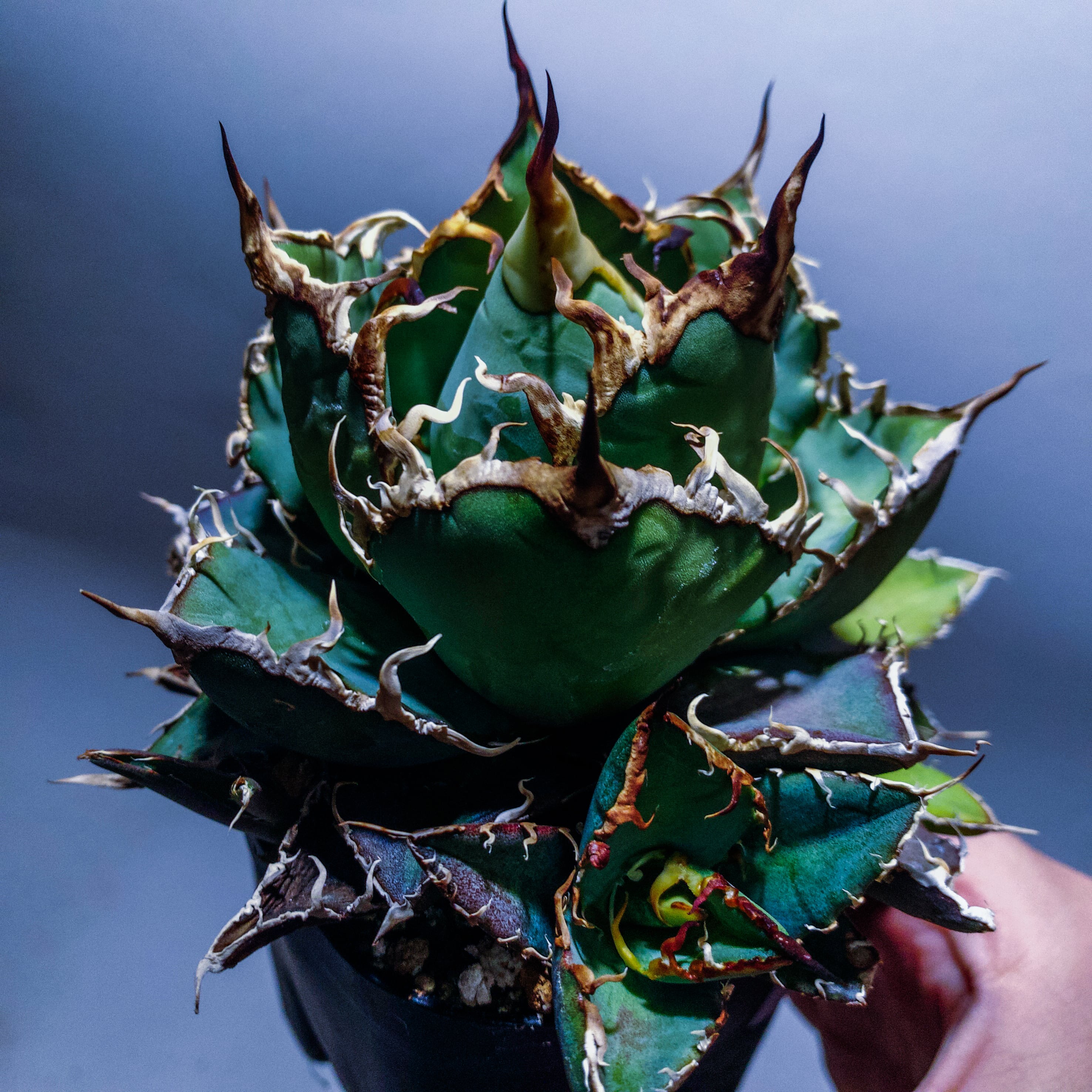 名前ですが、ナーサリー側は去年の11月から”Oaxaca Babies” "Baby Oaxacas" "Baby Oaxaca” (オアハカ・ベイビーズ、ベビーオアハカ)と呼んでおり、インボイスには”Agave Titanota from Oaxaca tissue clone”と記載しています。つまり何らかの名付けを行っておりません。できるだけ本人が書いた呼び名であり、アリゾナで作っていることを示す意味で、”Oaxaca Babies from Arizona”と記載します。