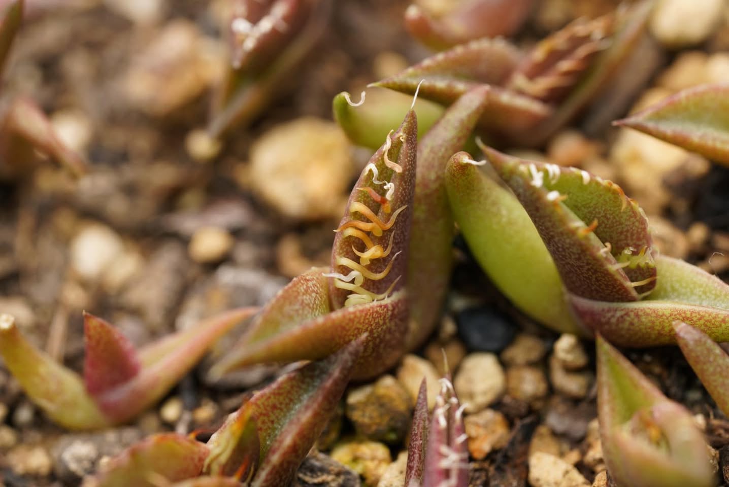 おしべはどの花か、を特定することはほぼ不可能ですが、少なくとも周りにどんなアガベがあるかから、できた種における、めしべを持つ親の特徴以外の特徴をある程度推測するのも面白いことと考えます。それらが交配する可能性を視野に入れると、結果としてのフェノタイプを想像することができるかもしれません。