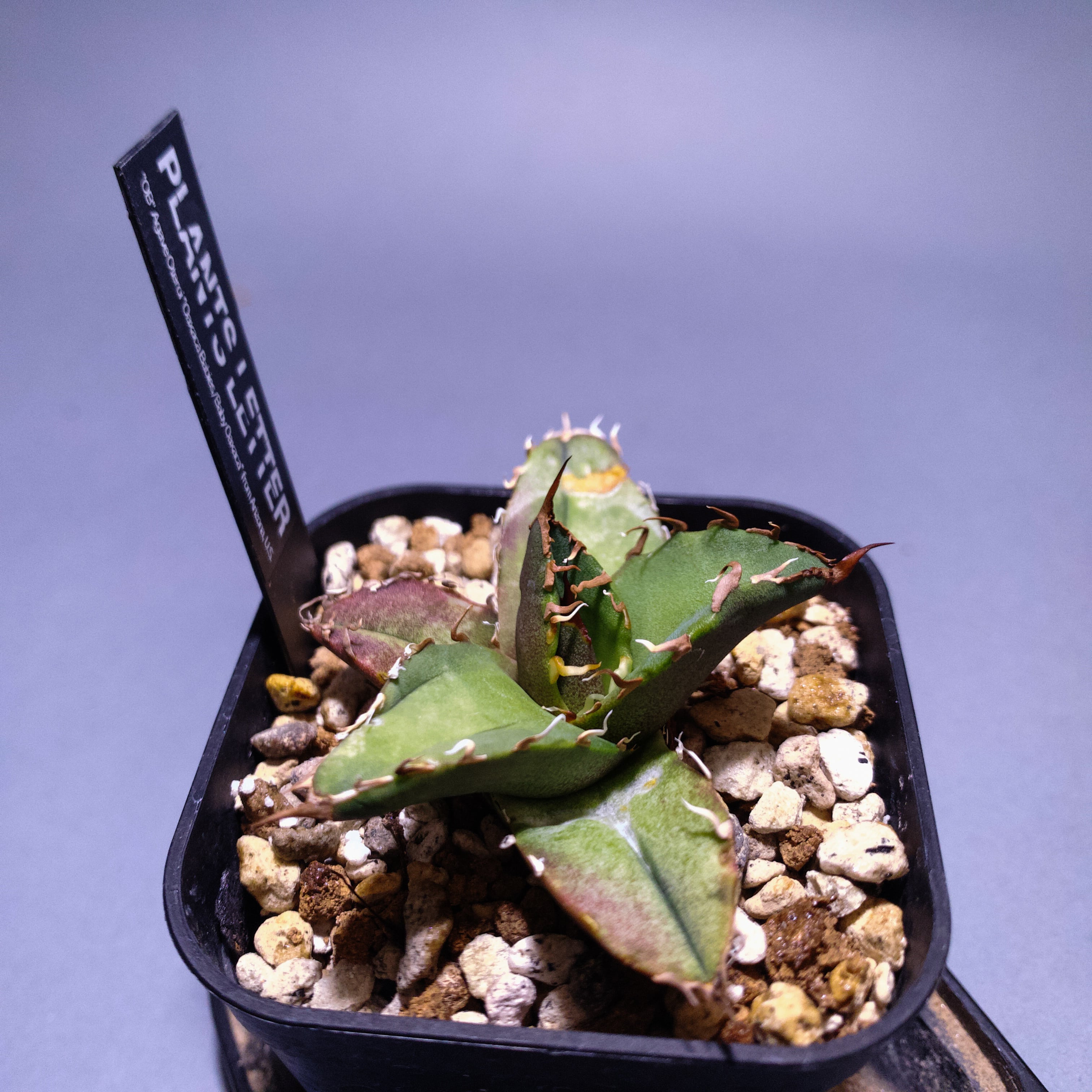 名前ですが、ナーサリー側は去年の11月から”Oaxaca Babies” "Baby Oaxacas" "Baby Oaxaca” (オアハカ・ベイビーズ、ベビーオアハカ)と呼んでおり、インボイスには”Agave Titanota from Oaxaca tissue clone”と記載しています。つまり何らかの名付けを行っておりません。できるだけ本人が書いた呼び名であり、アリゾナで作っていることを示す意味で、”Oaxaca Babies from Arizona”と記載します。